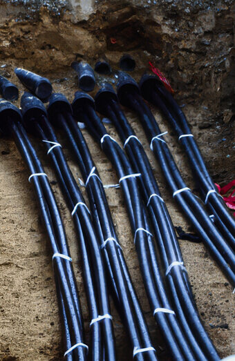 We connect new properties to the electricity network using underground service cables from the nearest pillar or pit. Includes trenching, conduit, and terminations.